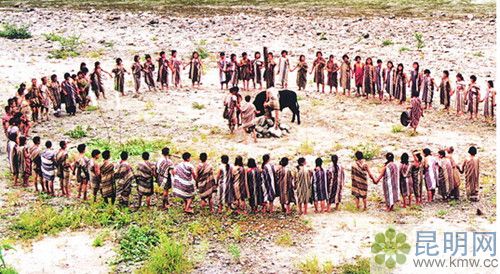 卡雀娃:獨龍牛常用來祭天。卡雀娃節是獨龍族的春節,一年就這么一個節日。每年的1月10日。“卡雀娃”節最重要的活動就是剽牛祭天。