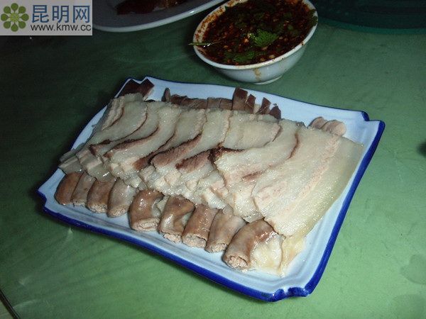 色、香、味、形俱佳,選料精良,非剛打鳴的土公雞不要;加工方法獨到,鹵料多達20多種,最重要的是鹵料的比例,多一錢則多,少一錢則不及。它佐以的蘸水也不同凡響,青韭白蔥玉蒜黃姜……小小一碗竟盛著赤橙黃綠青藍紫,讓人嘆為觀止。作為配料的卷粉、米線的加工用料也是選自本地一種傳統(tǒng)優(yōu)質(zhì)稻米。