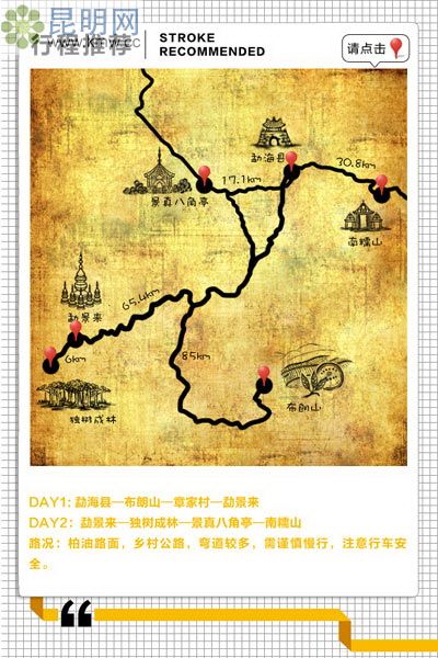 滇藏茶馬古道的源頭和滇緬通關的重要驛站;去布朗山探訪千年古寨;親臨西雙版納重要文物之一的景真八角亭;烤雞用手撕著吃。