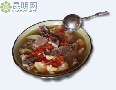 酸木瓜牛肉是德昂族的一道特色菜。黃牛肉、酸木瓜、精鹽、大蒜、鮮姜和鮮辣椒。將切好的牛肉與酸木瓜等調料一同煮至入味酥爛。味道酸香醇厚。