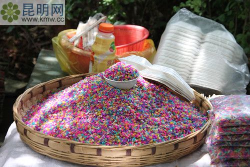 布依族“三月三”等節(jié)日必備的美食,據(jù)說已有800多年的歷史。主料為糯米,顏料由天然植物熬成,用布依族傳統(tǒng)工藝蒸煮,呈紅、黃、紫、黑等色,真正的“秀色可餐”。